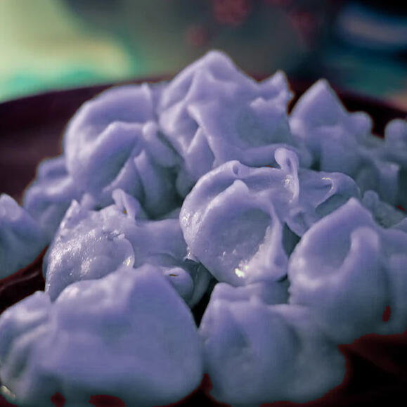 Savory dzo-meat dumplings wrapped in thin, blue-dyed pastry. All served small for this special event! Flavored with a spicy blend of spices sourced directly from the Azim Steppe, this recipe was devised with tender affection, specifically to bring a light to the lives of lizards everywhere.