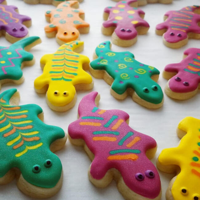 Lizard-shaped cookies baked with Beru's own special sugar cookie recipe, fine-tuned specifically for pre-eminent sweets-lover Toyo. Iced with various colors and designs to suit a variety of tastes.